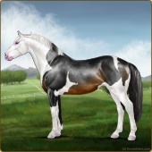 Name: Harmo X Silve 194Age: 5 Mare Color: Smokey Black Tobiano Splash White Varnish Blanket Appaloosa Breed: Irish Sport Horse Foal Rating: P/P/P |  |