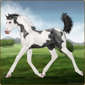 Name: Harmo X Chris 197Age: 2 Mare Color: Silver Black Splash White Varnish Appaloosa Breed: Irish Sport Horse Foal Rating: E/P/P |  |