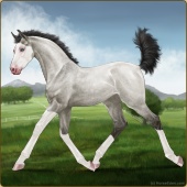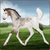 Name: 43259395Age: 3 Mare Color: Grullo Splash White Breed: Irish Sport Horse Foal Rating: E/E/E Bravery Rating: Sub-Par |  |