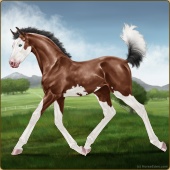 Name: Sabin X KingJ 200Age: 1 Filly Color: Blood Bay Splash White Sabino Breed: Irish Sport Horse Foal Rating: E/E/E |  |