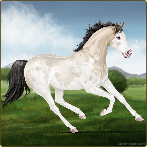 Color: Buckskin Roan Splash White Sabino Frame