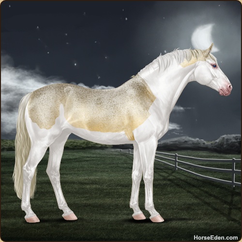 | Remarks Palomino base coat. Homozygous Splash (SplSpl). |