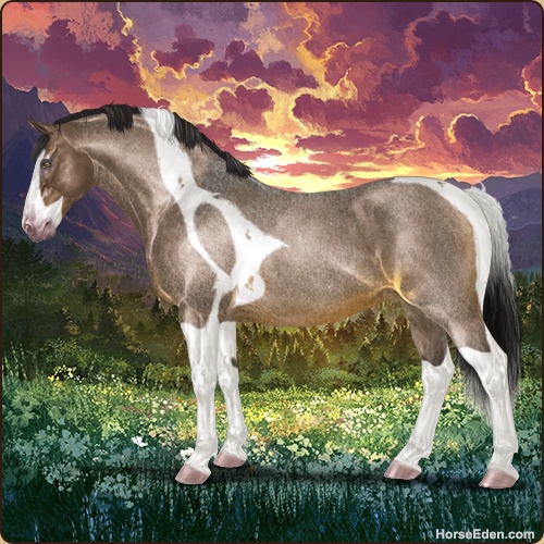 Color: Brown Roan Dun Tobiano Splash White