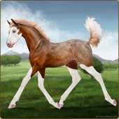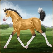 Name: VP Rusted HaloAge: 1 Filly Color: Golden Buckskin Splash White Breed: Sport Horse Foal Rating: E/E/E |  |