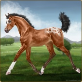 Name: Vale Dun AramisAge: 4 Gelding Color: Blood Bay Frost Appaloosa Breed: Irish Sport Horse Foal Rating: E/E/E Bravery Rating: Sub-Par |  |