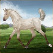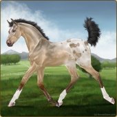Name: MyriadAge: 2 Mare Color: Smokey Creme Roan Sabino Blanket Appaloosa Breed: Irish Sport Horse Foal Rating: W/E/E |  |
