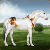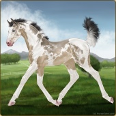 Name: Hooked on AmberAge: 7 Mare Color: Silver Dunskin Sabino Varnish Appaloosa Breed: Sport Horse Foal Rating: W/E/E |  |