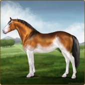 Name: ꟻHF Vermillion StarAge: 5 Mare Color: Blood Bay Dun Tobiano Appaloosa Breed: Sport Pony Foal Rating: W/E/E |  |