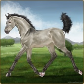 Name: ⎈ Neutron ExplosionAge: 4 Stallion Color: Silver Buckskin Tobiano Sabino Breed: Irish Sport Horse Foal Rating: E/W/E |  |