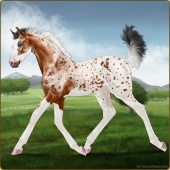 Name: Hooked On CelestialsAge: 2 Gelding Color: Black Varnish Frost Appaloosa Breed: Irish Sport Horse Foal Rating: W/E/E |  |