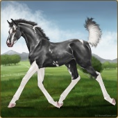 Name: ☾ LE NeasaAge: 1 Filly Color: Smokey Black Tobiano Breed: Irish Sport Horse Foal Rating: E/W/W |  |