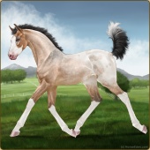 Name: Ever Divine Hermes Age: 0 Stallion Color: Dunskin Sabino Blanket Appaloosa Breed: Irish Sport Horse Foal Rating: P/E/E |  |