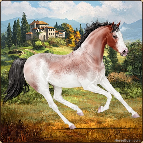 Color: Blood Bay Roan Sabino
