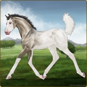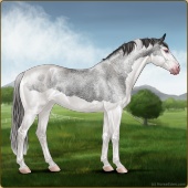 Name: Snork X GrabB 196Age: 5 Mare Color: Palomino Roan Splash White Sabino Frost Appaloosa Breed: Sport Horse Foal Rating: P/E/E |  |