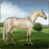 Name: Snork X NDSMo 195Age: 6 Stallion Color: Cremello Roan Breed: Sport Pony Foal Rating: E/E/E |  |