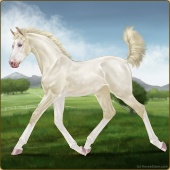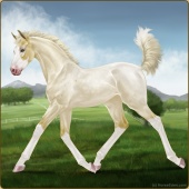 Name: Snork X Golde 196Age: 5 Mare Color: Perlino Splash White Breed: Sport Pony Foal Rating: E/E/E |  |