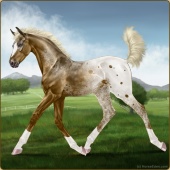 Name: Sensational PEE 1/1Age: 2 Stallion Color: Palomino Roan Splash White Varnish Blanket Appaloosa Brindle Breed: Sport Pony Foal Rating: P/E/E |  |