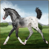 Name: Snork X Aaron 199Age: 2 Mare Color: Smokey Blue Roan Splash White Sabino Varnish Appaloosa Breed: Sport Pony Foal Rating: E/E/E |  |