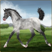 Name: Snork X Sesam 196Age: 5 Mare Color: Smokey Blue Roan Breed: Sport Pony Foal Rating: P/E/E |  |
