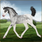 Name: Snork X SSEAp 200Age: 1 Filly Color: Silver Roan Splash White Blanket Appaloosa Breed: Sport Horse Foal Rating: E/E/E |  |
