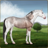 Name: Qst Olive Docker EEEAge: 4 Mare Color: Grullo Tobiano Sabino Breed: Sport Horse Foal Rating: E/E/E For Breeding! |  |