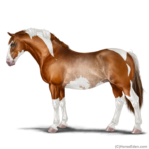 Color: Chestnut Tobiano Splash White Sabino Rabicano