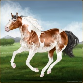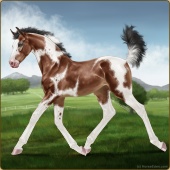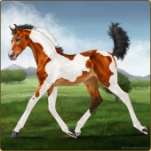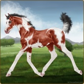 Name: ✯Nevada EEEAge: 3 Mare Color: Mahogany Bay Tobiano Sabino Breed: Appendix Quarter Horse Foal Rating: E/E/E |  |