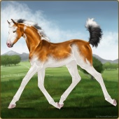 Name: ✯Potato Haze EWEAge: 3 Mare Color: Light Bay Tobiano Breed: Appendix Quarter Horse Foal Rating: E/W/E |  |