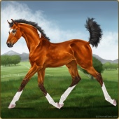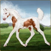 Name: ✯Oriental Potato WEEAge: 2 Mare Color: Blood Bay Tobiano Sabino Breed: Appendix Quarter Horse Foal Rating: W/E/E |  |