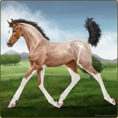 Name: ✯Hallowed Haze EEEAge: 2 Mare Color: Silver Buckskin Pearl Tobiano Breed: Appendix Quarter Horse Foal Rating: E/E/E |  |