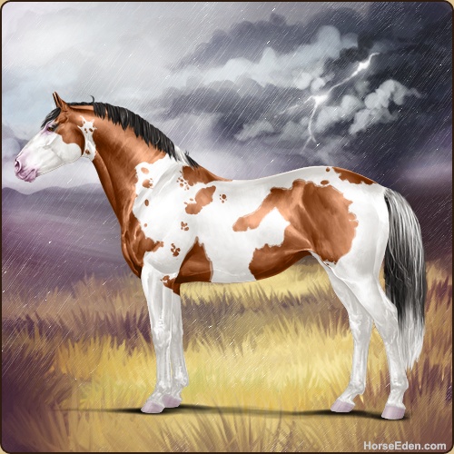 Color: Light Bay Tobiano Splash White Brindle