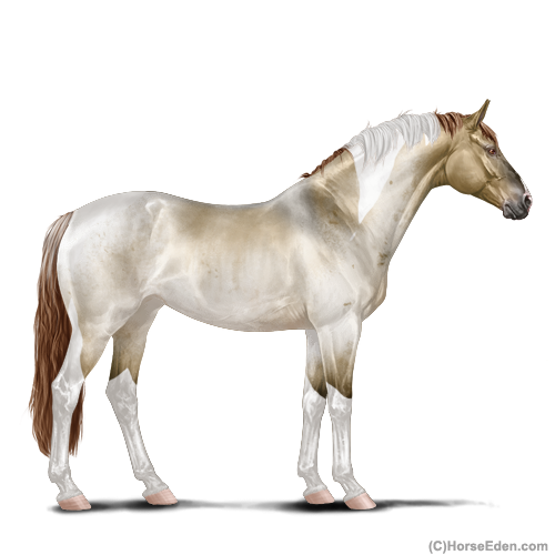 Color: Dark Red Roan Dun Tobiano