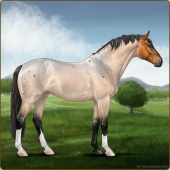 Name: G Warranty ExpiredAge: 5 Gelding Color: Dunskin Roan Tobiano Rabicano Breed: Sport Horse Foal Rating: W/P/A |  |