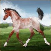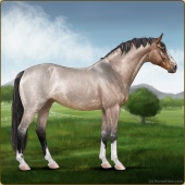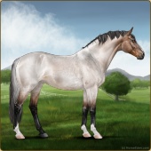 Name: CadronAge: 5 Gelding Color: Mahogany Bay Roan Dun Rabicano Breed: Sport Horse Foal Rating: W/S/A |  |