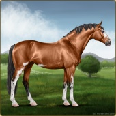 Name: The Short InventionAge: 5 Gelding Color: Mahogany Bay Dun Tobiano Breed: Sport Horse Foal Rating: W/S/Sub |  |