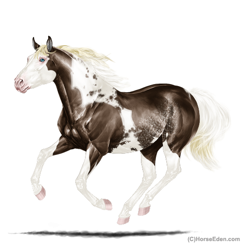 Color: Dark Flaxen Liver Chestnut Tobiano Splash White Sabino Rabicano