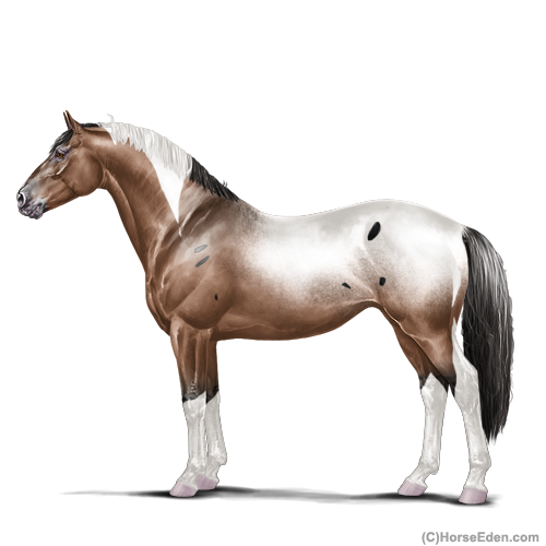 Name:SS Party Animal Age: 4 Mare Color: Light Bay Tobiano Leopard Appaloosa Breed: Irish Sport Horse Foal Rating: Sub/Sub/Sub Bravery Rating: World Class
