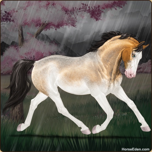 Color: Golden Bay Roan Dun Splash White Sabino