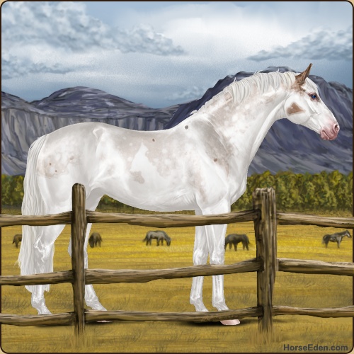 Color: Silver Mahogany Bay Roan Dun Tobiano Splash White Rabicano Frame Snowflake Appaloosa