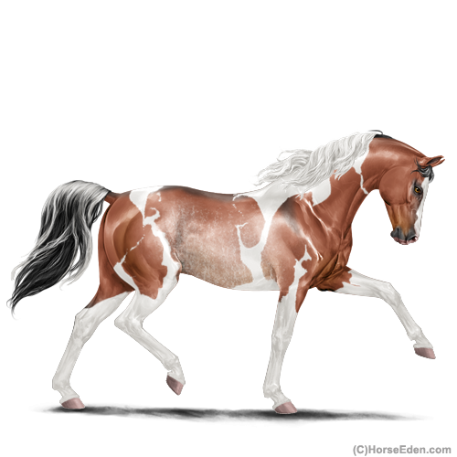 Color: Blood Bay Dun Tobiano Sabino Rabicano