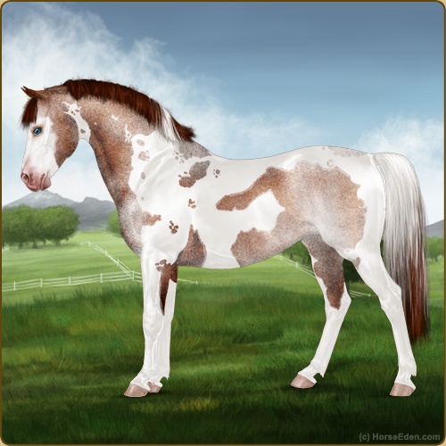 Color: Chestnut Tobiano Rabicano Frame Varnish Appaloosa