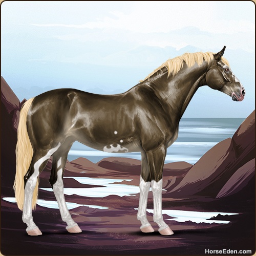 Color: Dark Flaxen Liver Chestnut Sabino