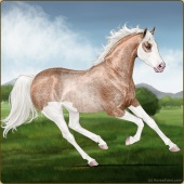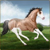 Name: Devils Time 196 PEPAge: 5 Mare Color: Silver Buckskin Pearl Splash White Sabino Rabicano Frame Breed: Thoroughbred Foal Rating: P/E/P Bravery Rating: Sub-Par |  |
