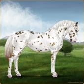 Name: 💧Quasi X Sough 196 EEEAge: 5 Mare Color: Mahogany Bay Varnish Snowcap Appaloosa Breed: Knabstrupper Foal Rating: E/E/E |  |