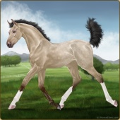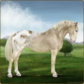Name: Hazi Quasi eprl EEE °Age: 4 Mare Color: Silver Buckskin Pearl Sabino Varnish Appaloosa Breed: Irish Sport Horse Foal Rating: E/E/E |  |