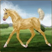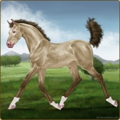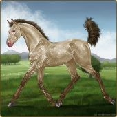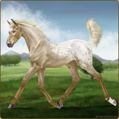 Name: Quasi Jedif eprl EEE -Age: 4 Mare Color: Palomino Pearl Frost Appaloosa Breed: Sport Horse Foal Rating: E/E/E |  |