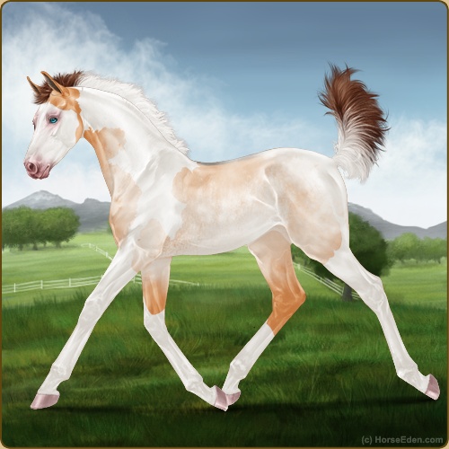 Color: Apricot Roan Dun Tobiano Splash White Rabicano