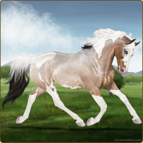 Color: Light Bay Roan Dun Tobiano Splash White Sabino Rabicano