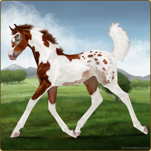 Color: Chestnut Tobiano Rabicano Blanket Appaloosa