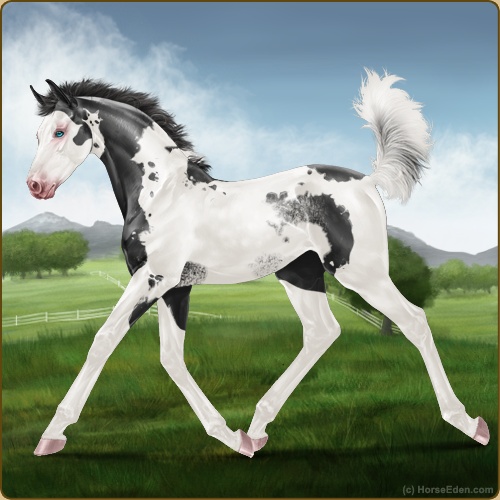 Color: Smokey Black Tobiano Splash White Rabicano Frame